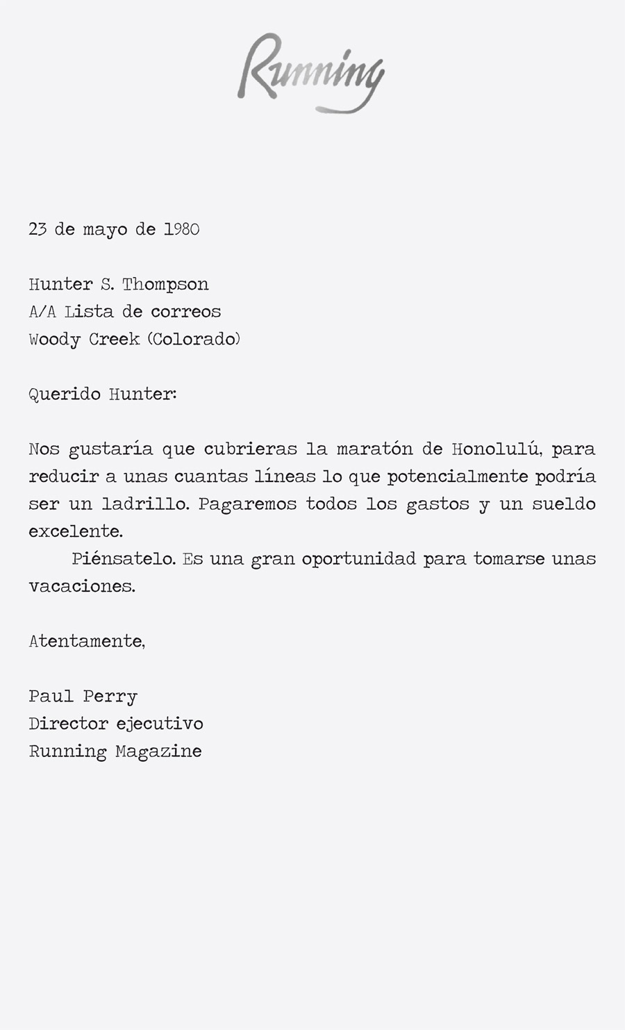 Olé sus huevos también por el arranque de la novela, un intercambio de cartas que es un prodigio de descaro, desvergüenza y buenas ideas con respecto a cómo se corre un maratón.